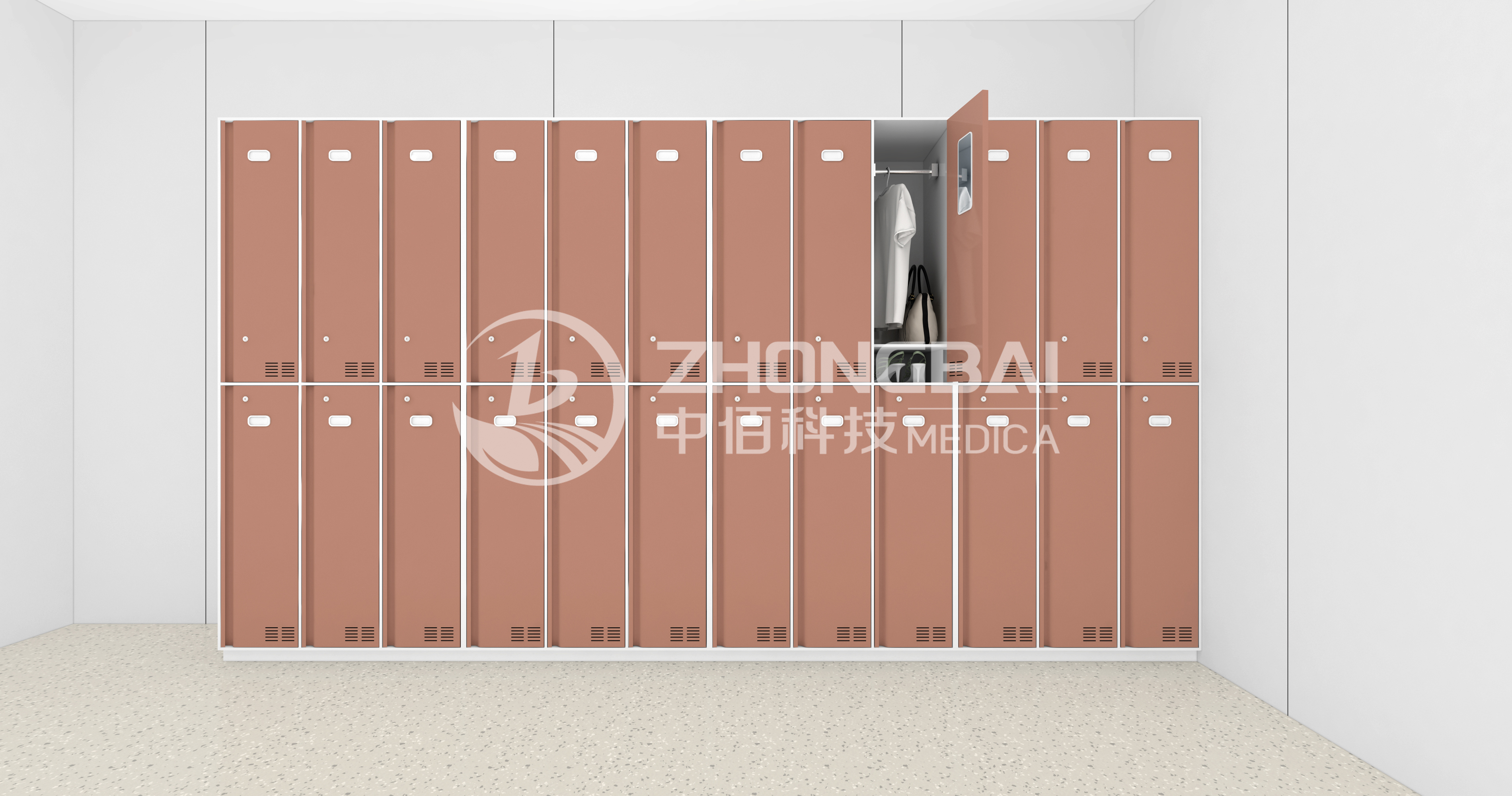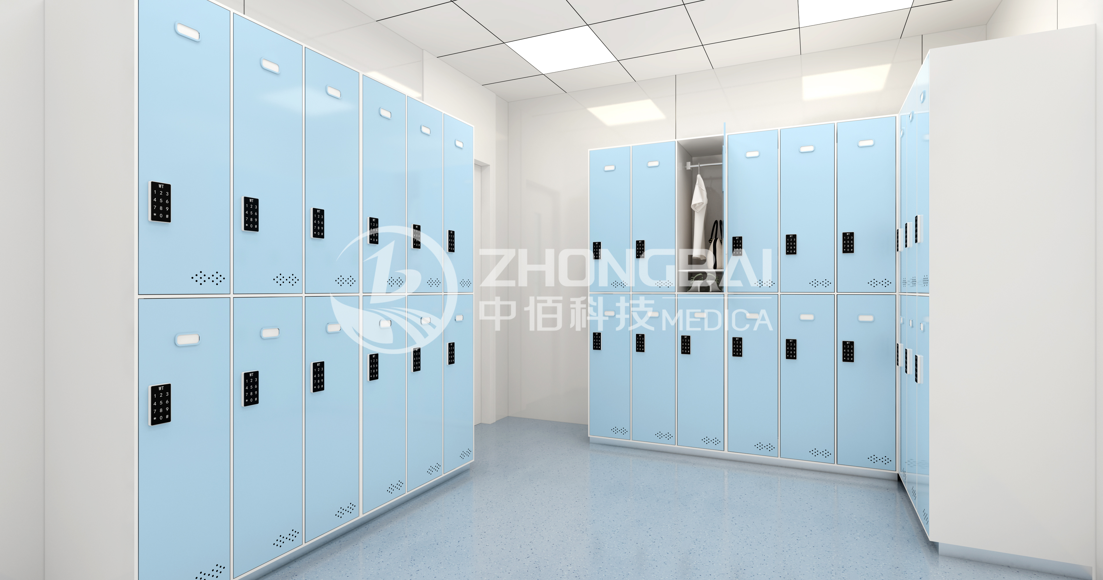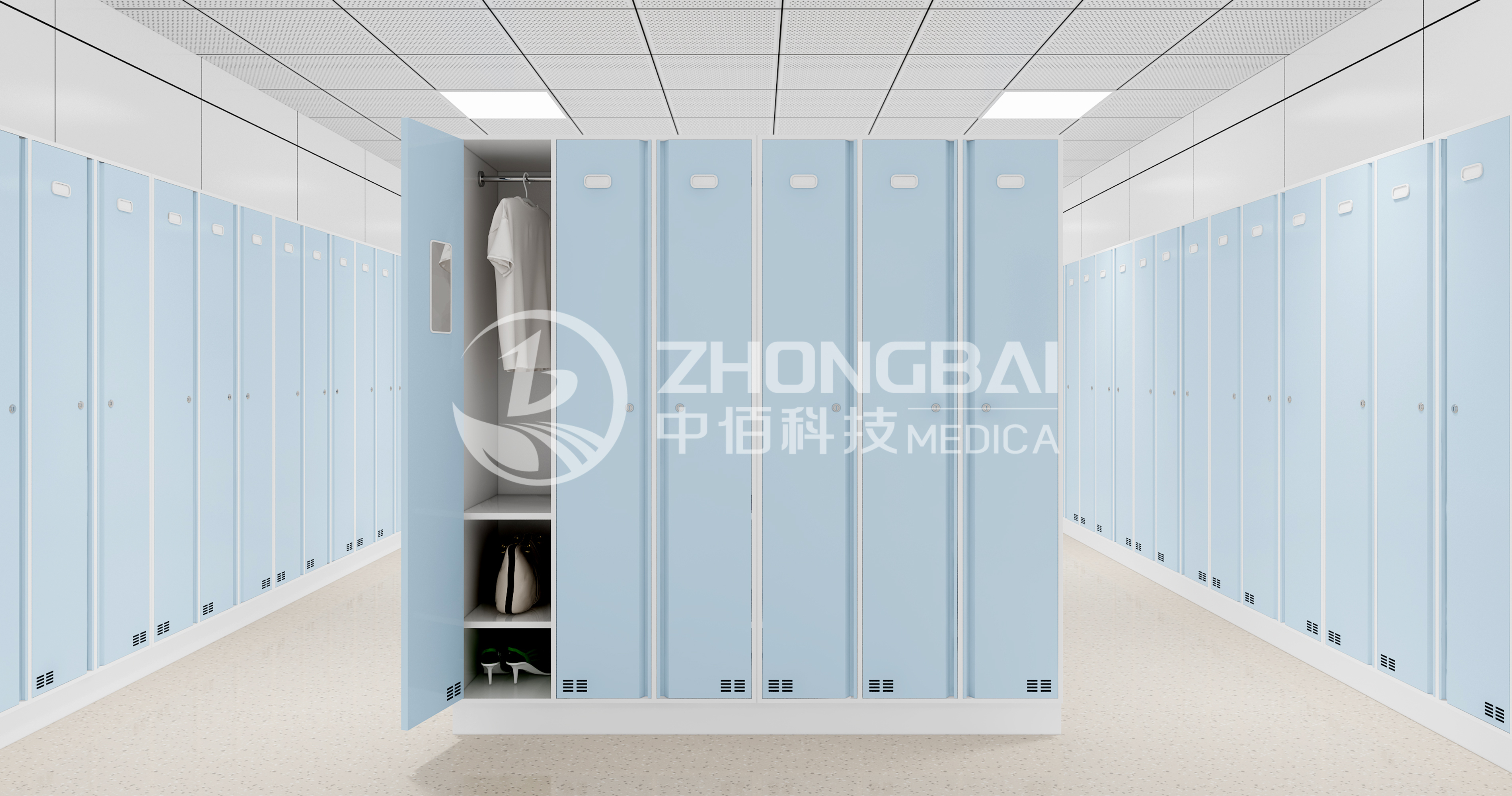 為醫(yī)護(hù)工作者營造舒適的更衣?lián)Q鞋,更衣柜、換鞋柜的設(shè)計(jì)既保證了安全性、私密性,同時(shí)也兼具豐富的功能性。